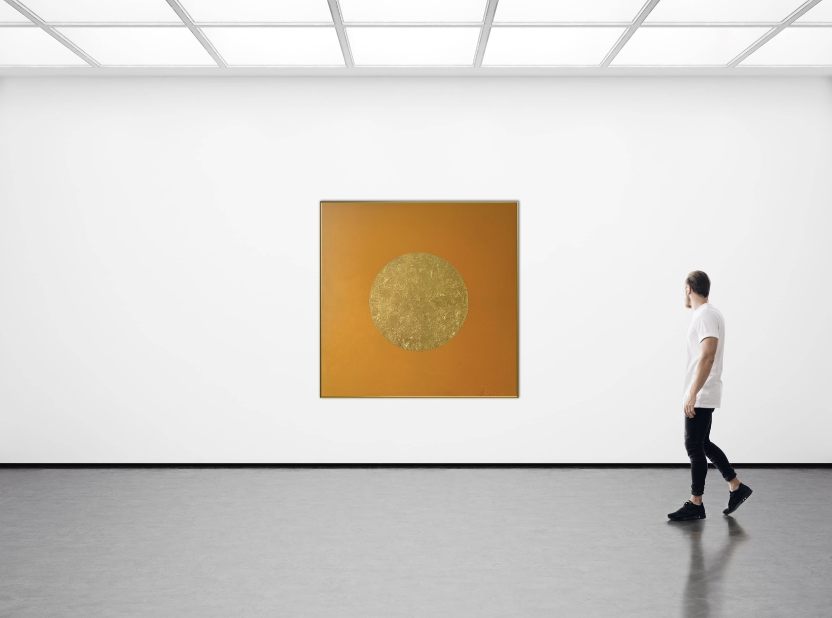 Beautiful oil painting with real gold in the middle, double gold-plated with the finest 24 carat real gold, in the middle ball has 60 cm diametrical mass